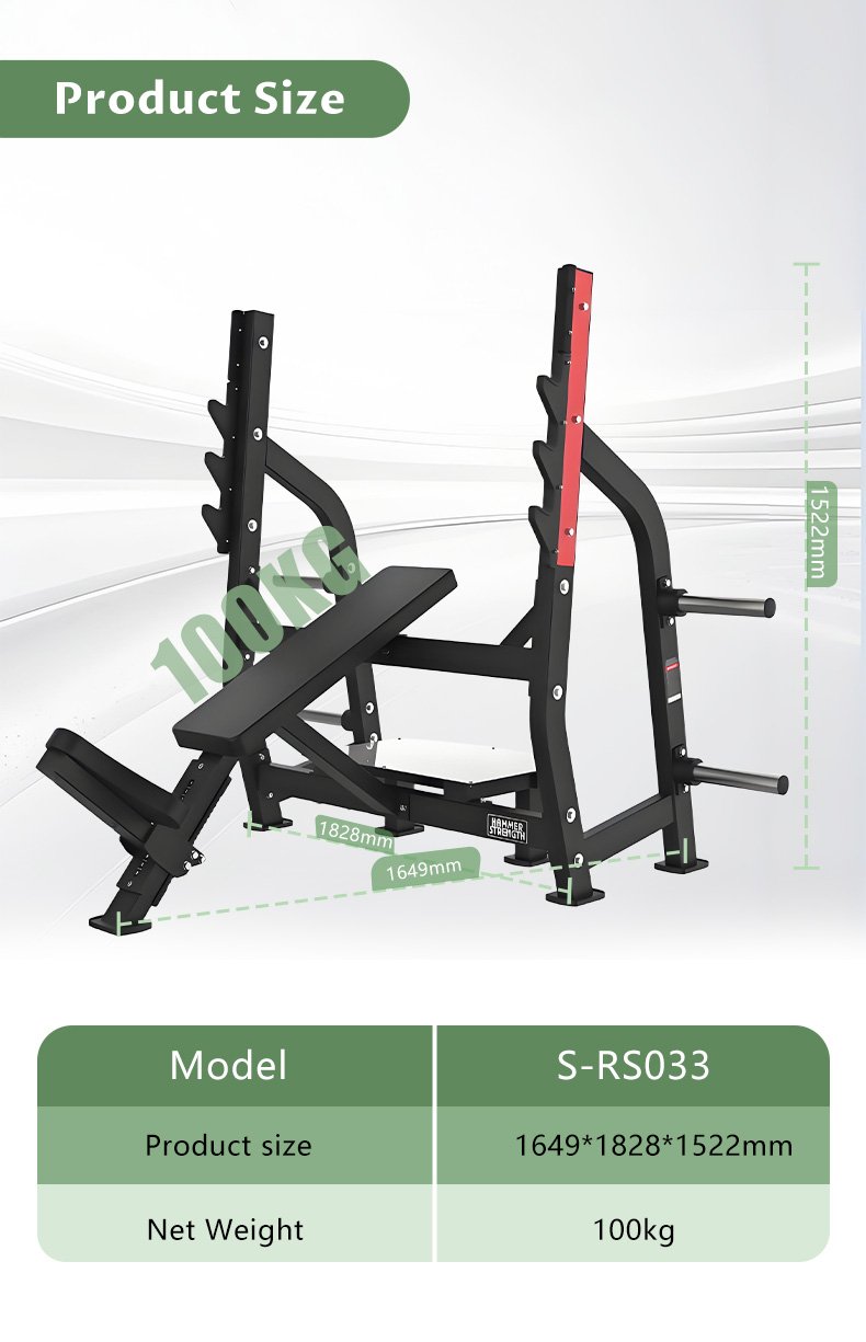 Engineered for the rigorous demands of commercial GYM CLUBs and dedicated Fitness Studios, the S-RS033 provides the ideal platform for safe and effective incline pressing movements, an essential component for building a balanced, powerful physique.